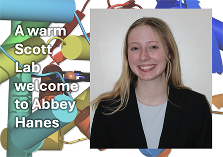 PIBS/Biological Chemistry first year graduate student Abbey Hanes is joining the Scott lab for her first rotation. During this time she'll learn all about human (membrane) cytochrome P450 generation, structure, and function, as well as getting exposure to the lab learning and mentoring environment. Welcome Abbey!