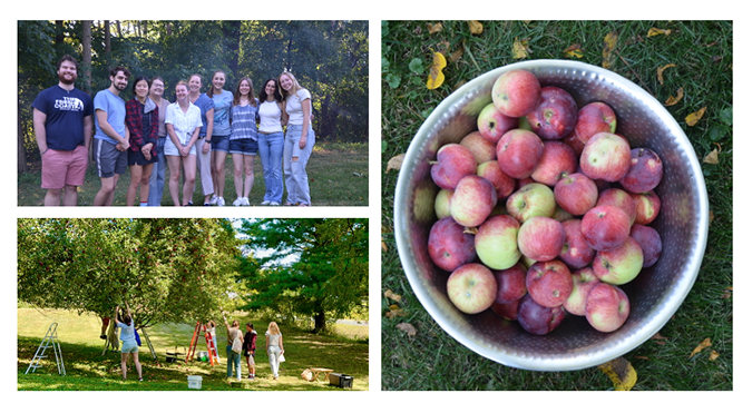 It was a lovely fall day for the Scott Lab to go apple picking and enjoy a cookout and picnic to welcome to the group new postdoctoral fellow Francesca Brunelli and PIBS/Biological Chemistry rotation student Abbey Hanes. Big hits: apples, hammocks, and s'mores (especially those with the secret ingredient: try Reese's peanut butter cups instead of Hershey's chocolate!).